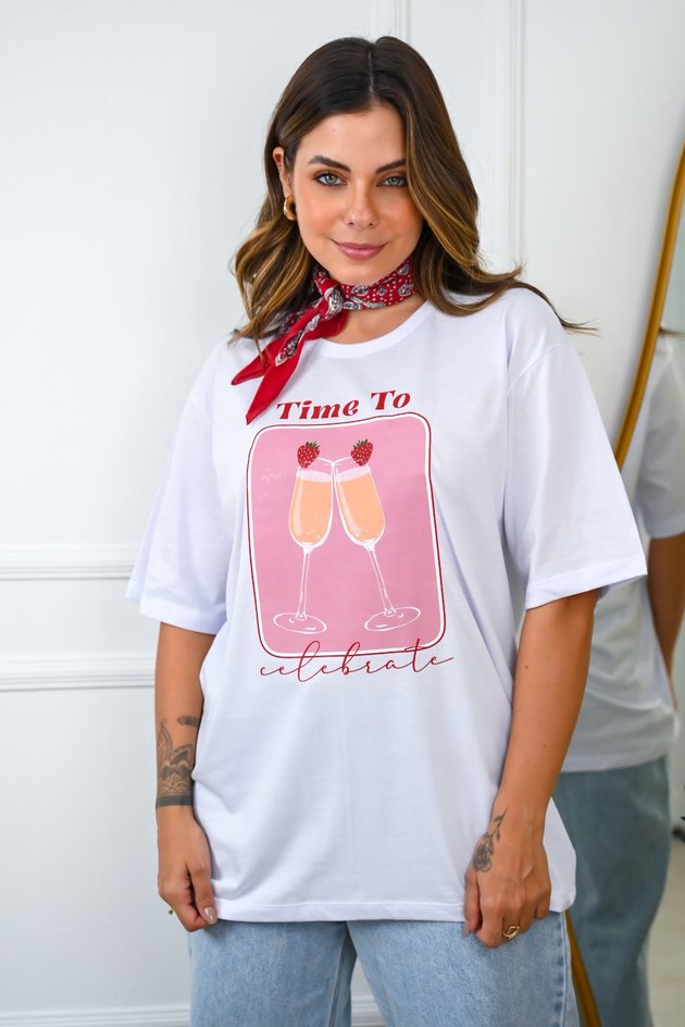 Modelagem: Ampla, manga curta e gola redonda, ideal para looks despojados.