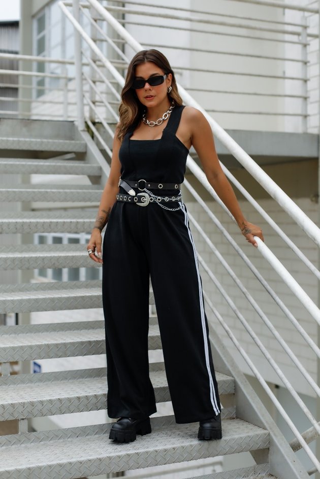 Macacão de alças confortável e prático, confeccionado em moletinho 100% algodão. Conta com elástico no busto e na cintura para um ajuste perfeito. As listras laterais adicionam um detalhe moderno ao design. Sem fechos, é fácil de vestir e ideal para looks casuais e confortáveis.