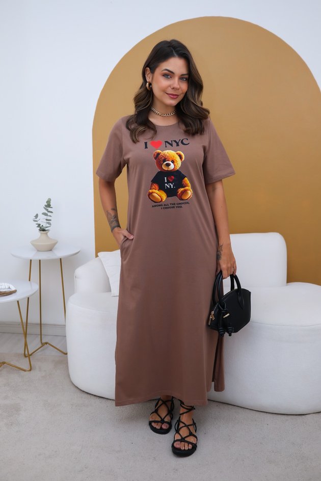 Este vestido midi é perfeito para quem ama estilo e diversão! Confeccionado em 100% algodão, oferece conforto e frescor, ideal para os dias mais quentes. A gola redonda, mangas curtas e os práticos bolsos completam o visual, enquanto os rachas laterais proporcionam mais liberdade e um toque moderno. O vestido ideal para quem busca um look descomplicado e cheio de personalidade!